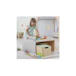 Stol za igru s klupicama savršen je dodatak za kutiće igre. Dvije praktične klupice ne služe samo za sjedenje, već i kao prostor za pohranu i dodatni prostor za igru. Mogu se gurnuti ispod stola kako bi se uštedio prostor nakon igre. Na samom stolu može se igrati sa svih strana: jedna strana ima maketu grada koju djeca mogu koristiti za stvaranje maštovitih scenarija, dok druga strana služi kao velika rampa.