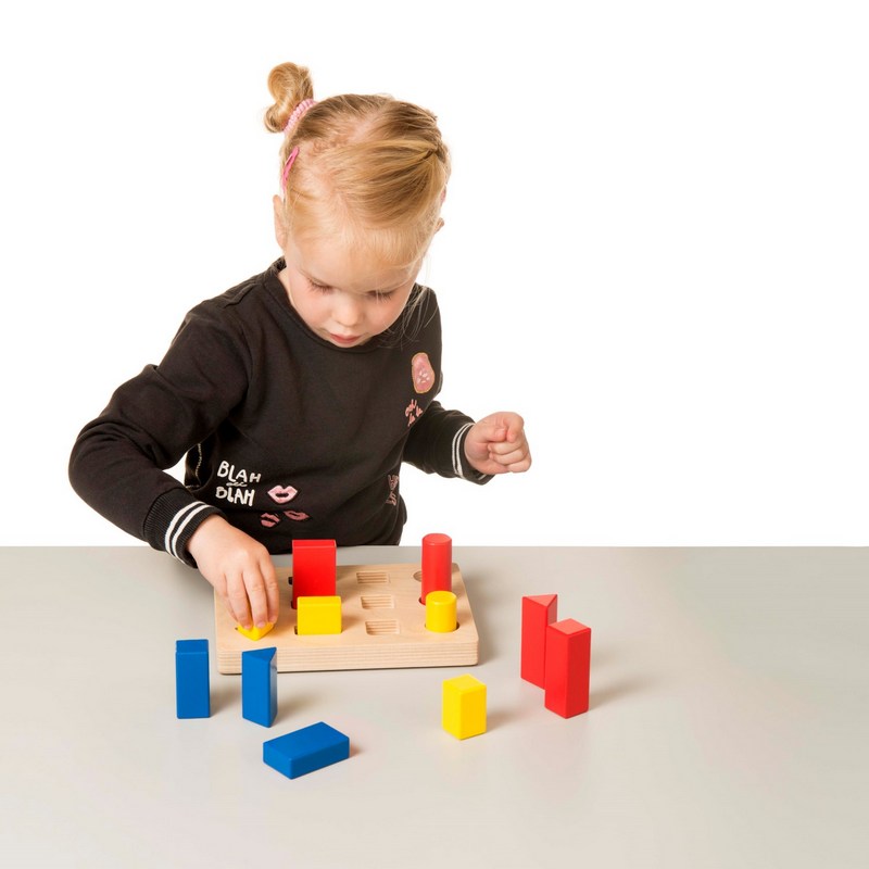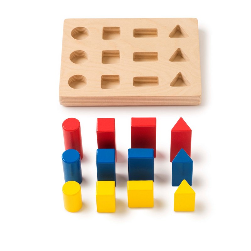 Drvena umetaljka koja potiče djecu da upoznaju oblike i forme inspirirana je “Froebelovim darovima”. Pomoću ovih masivnih oblika djeca stjeću prve spoznaje o prostornom konceptu i trodimenzionalnosti. Umetaljka je izrađena od brezine šperploče s mekim plastičnim ručkama.