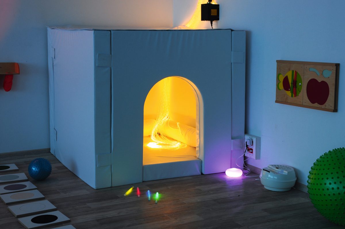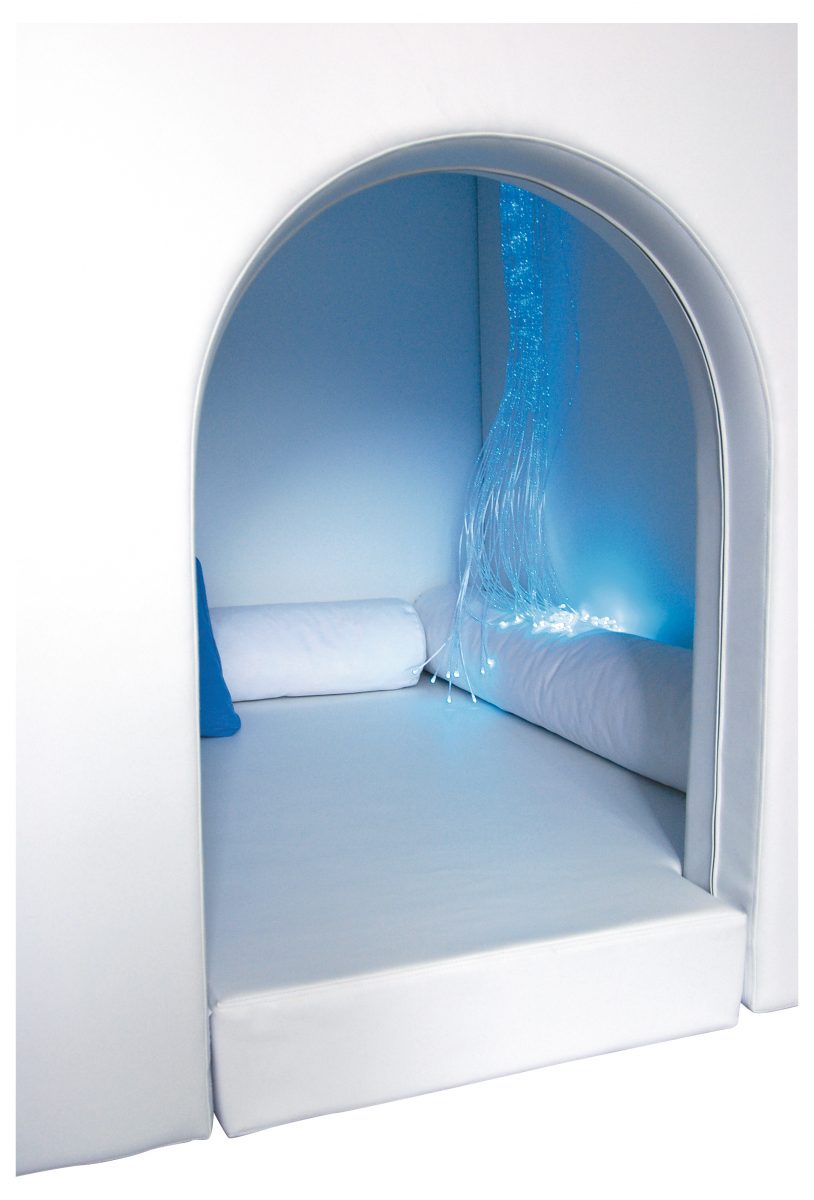 Napravite savršeno mjesto za odmor i relaksaciju. Kuća pruža djeci osjećaj sigurnosti, smiruje ih i uči koncentraciji. Opremite je raznim svjetlosnim setovima, od optičkih vlakana do projektora, te potaknite kod djece vizualne podražaje. Zidovi i krov se spajaju čičkom tako da se vlakna i žice od projektora bez problema mogu provući. Debljina zidova: 15 cm.