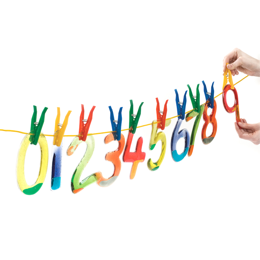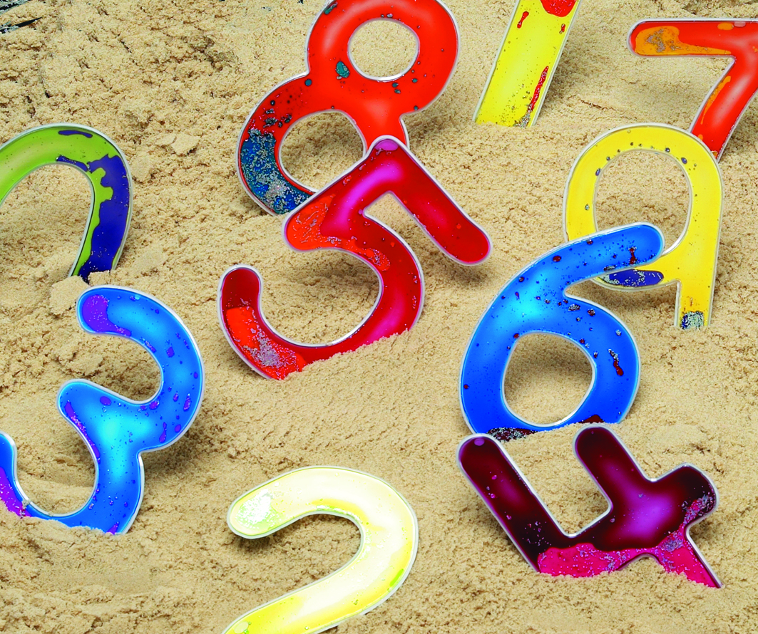 Mekani brojevi ispunjeni su tekućinom u boji i glitterom. Prolazite prstićima po njima kako biste vježbali oblik svakog broja i stimulirali mišiće. Odlični su za slijepu i slabovidnu djecu. Set sadrži brojeve od 0 do 9.