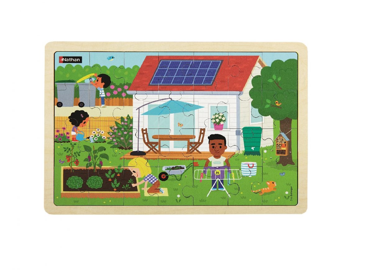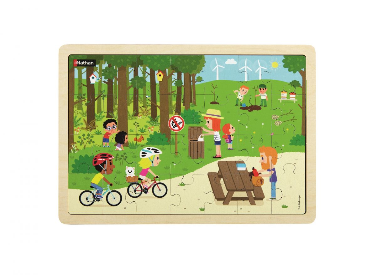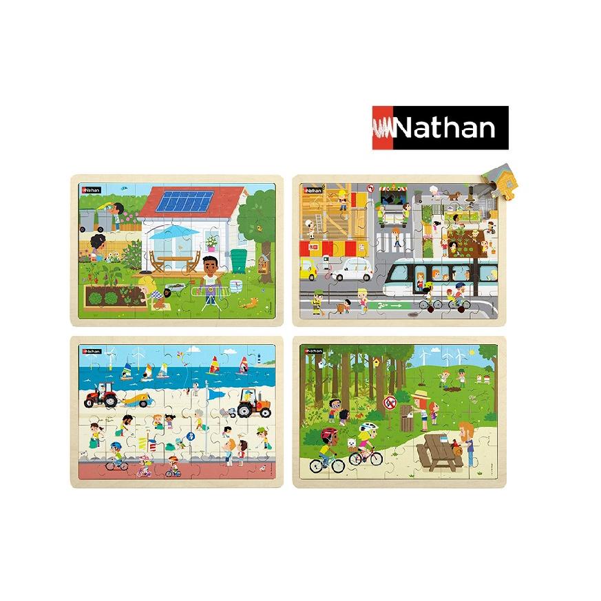 Set čine 4 puzzle (od 28 ili 35 elemenata) koje su vezane uz savjestan odnos prema okolišu u svakom okruženju. Set sadrži četiri tematske puzzle (vrt, grad, more i šuma). Njima možemo naučiti djecu da se pravilno odnose prema prirodi te da takvo ponašanje postane dio njihove svakodnevne rutine.