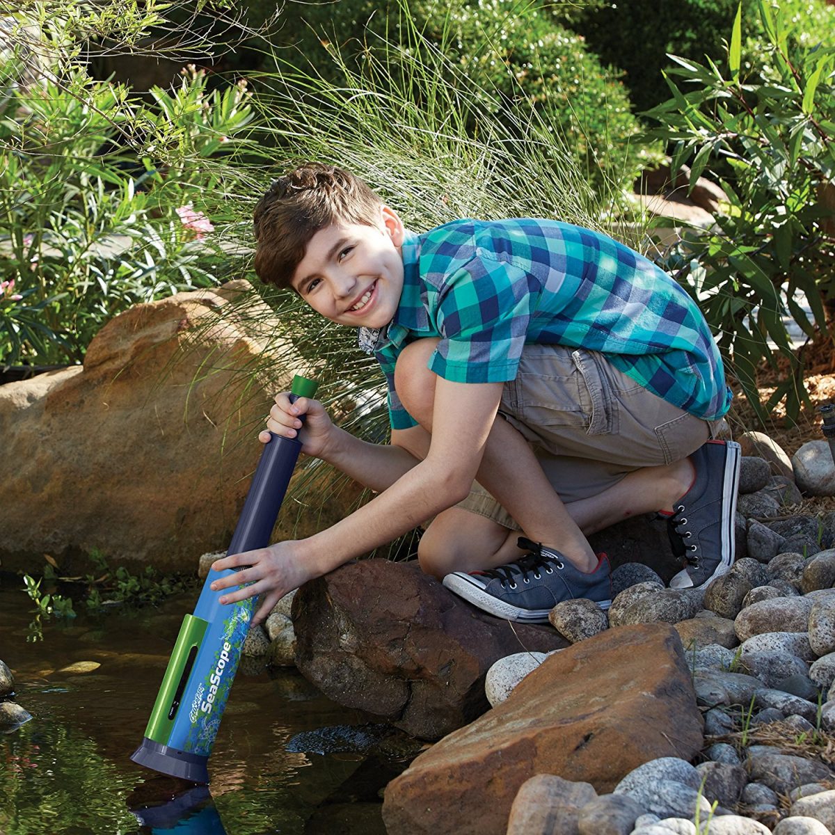 Postanite istraživač na kopnu ili pod vodom. Ovaj teleskop odličan je za gledanje udaljenih objekata na kopnu (uvećanje 4X) te za istraživanje života u potocima, barama, jezerima. Ugrađeno ravnalo omogućava mjerenje uzoraka na licu mjesta, a termometar određivanje temperature. Zahtijeva 2xAA baterije koje nisu dio seta.