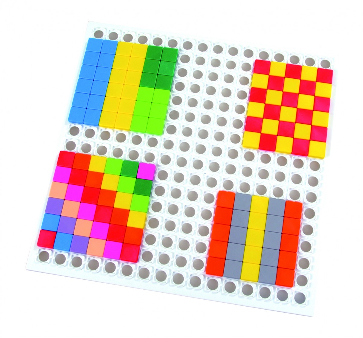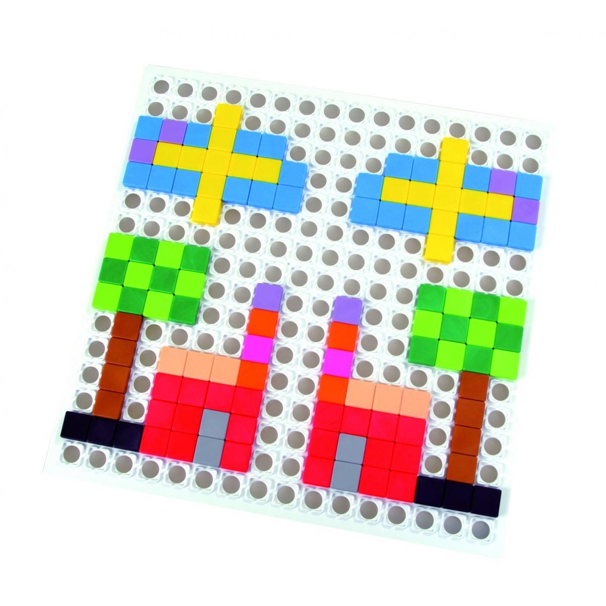 Kreativno-mozaična igra u kojoj djeca uz pomoću 350 kvadratića u 12 boja i plastične ploče s rupicama kreiraju geometrijske oblike ili likove iz mašte te tako slažu i zrcale geometrijske figure, stvaraju uzorke ili kreiraju slike. Mozaik se može slagati prema predlošcima (59-87240 zasebno se naručuju) ili prema vlastitom izboru.