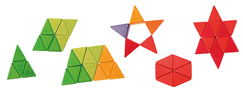 Ovaj skup trokutastih blokova je savršen za istraživanje i stvaranje oblika ili simetrije. Njime djeca mogu oblikovati raznolike, maštovite uzorke od malog do velikog trokuta, od šesterokuta do zvijezde te proučavati koji se sve drugi geometrijski oblici mogu stvoriti. Osim eksperimentiranja s oblicima i bojama, u gradnju se  također mogu uključiti i drugi građevinski setovi pa tako stvarati zgrade, strukture ili scene za igru. Tijekom igre i gradnje djeca treniraju fine motoričke vještine, logičko i prostorno razmišljanje.