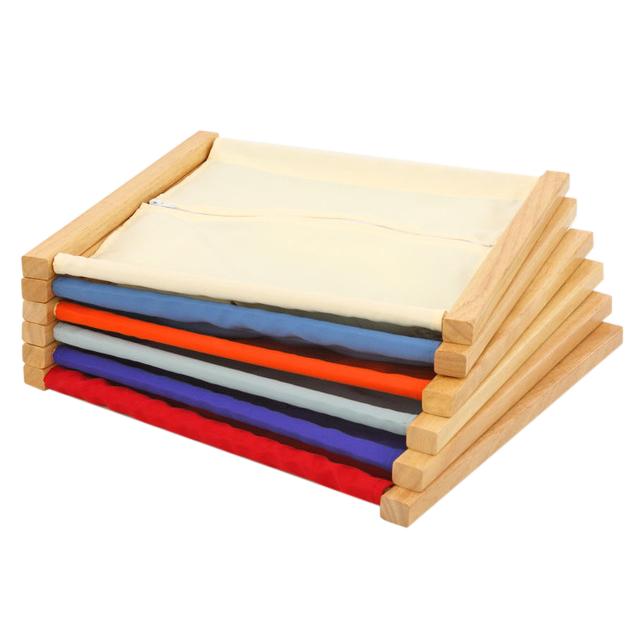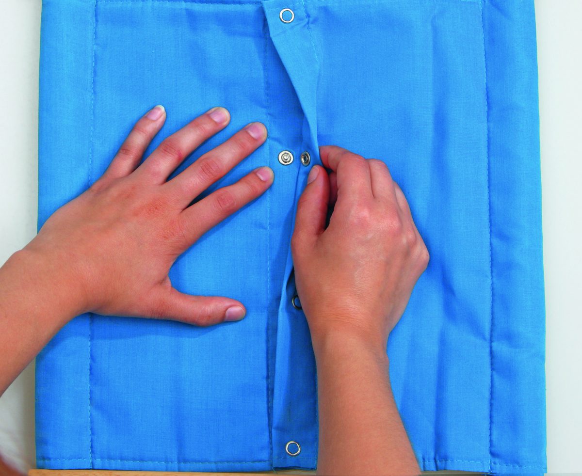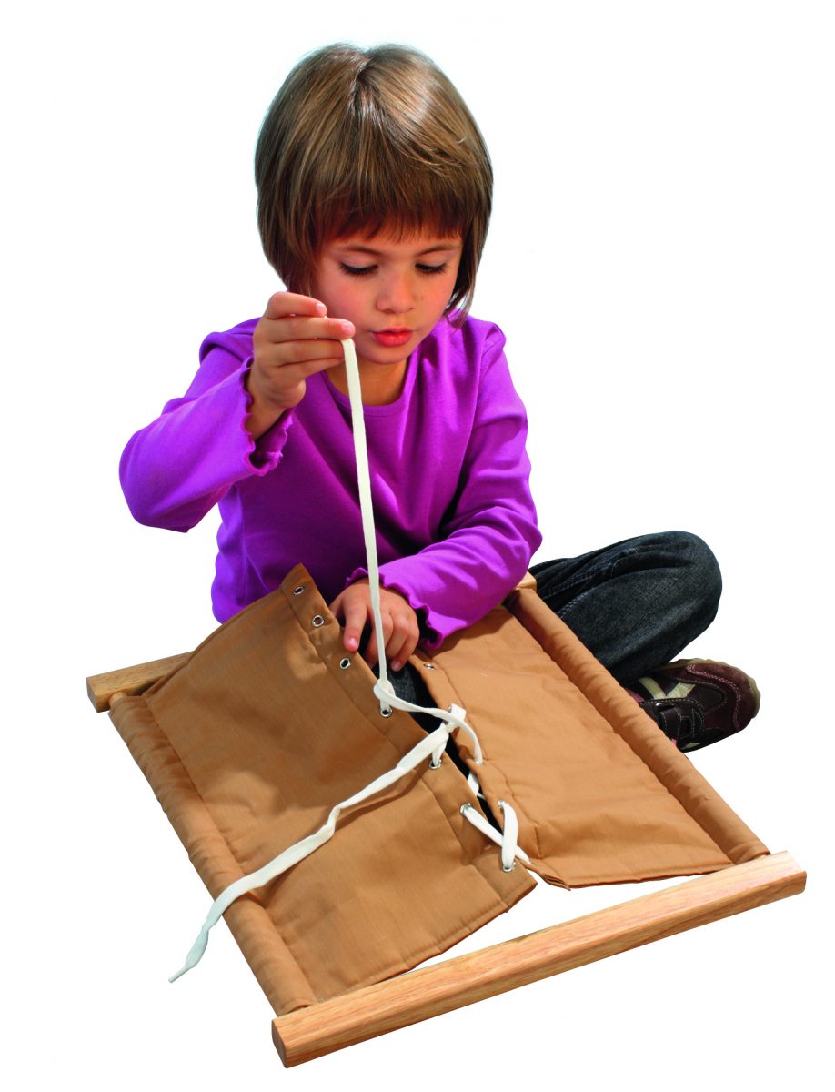 Montessori okviri pomažu djeci da svladaju različite načine vezanja odjeće kako bi se što prije mogla osamostaliti i sama oblačiti. Okviri su načinjeni od drva na koje je zategnuto platno sa zatvaračima.