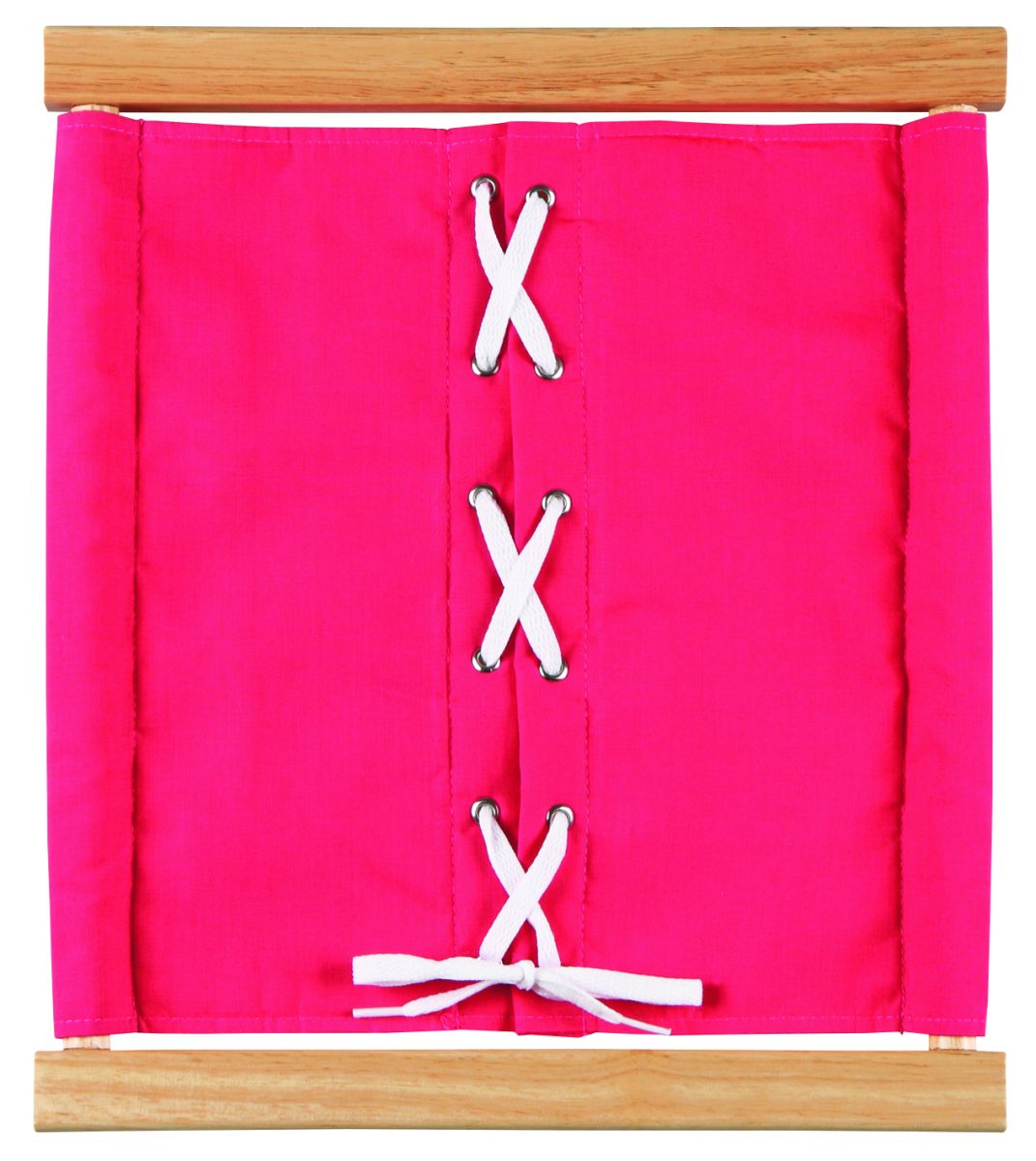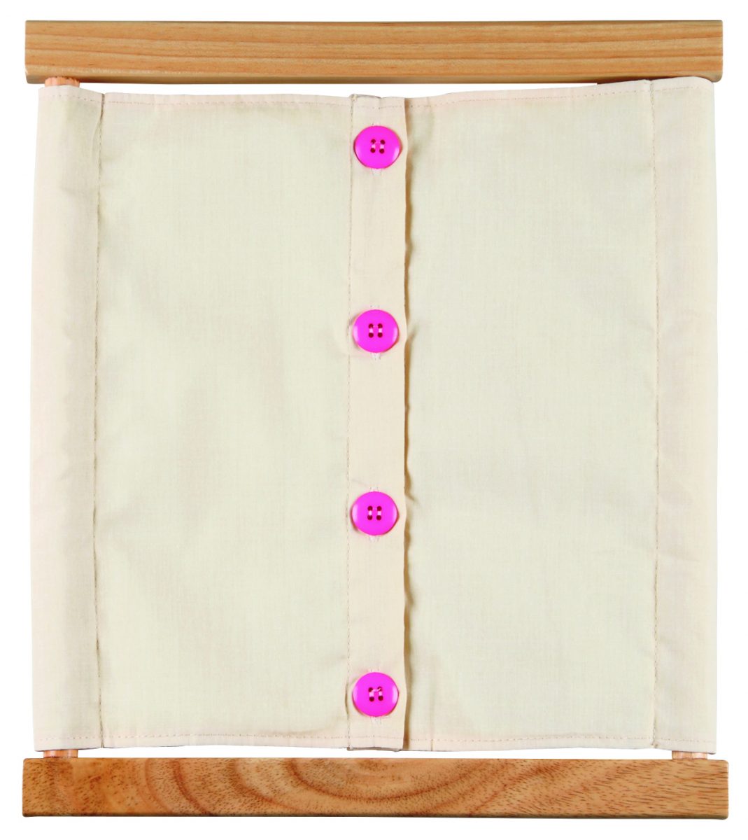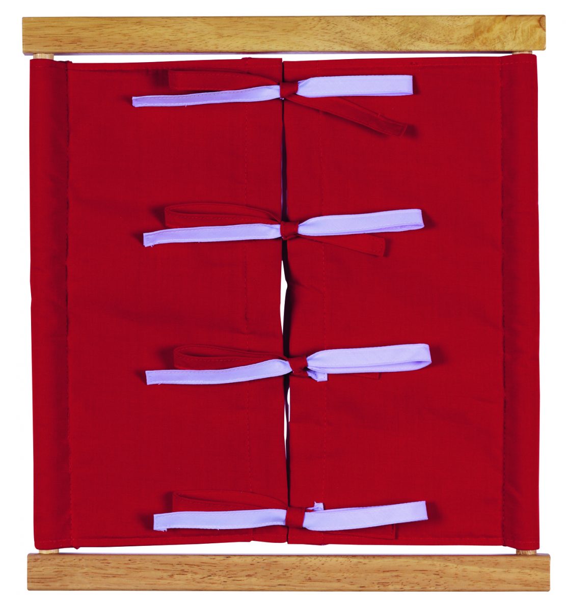 Montessori okviri pomažu djeci da svladaju različite načine vezanja odjeće kako bi se što prije mogla osamostaliti i sama oblačiti. Okviri su načinjeni od drva na koje je zategnuto platno sa zatvaračima.