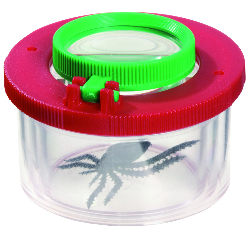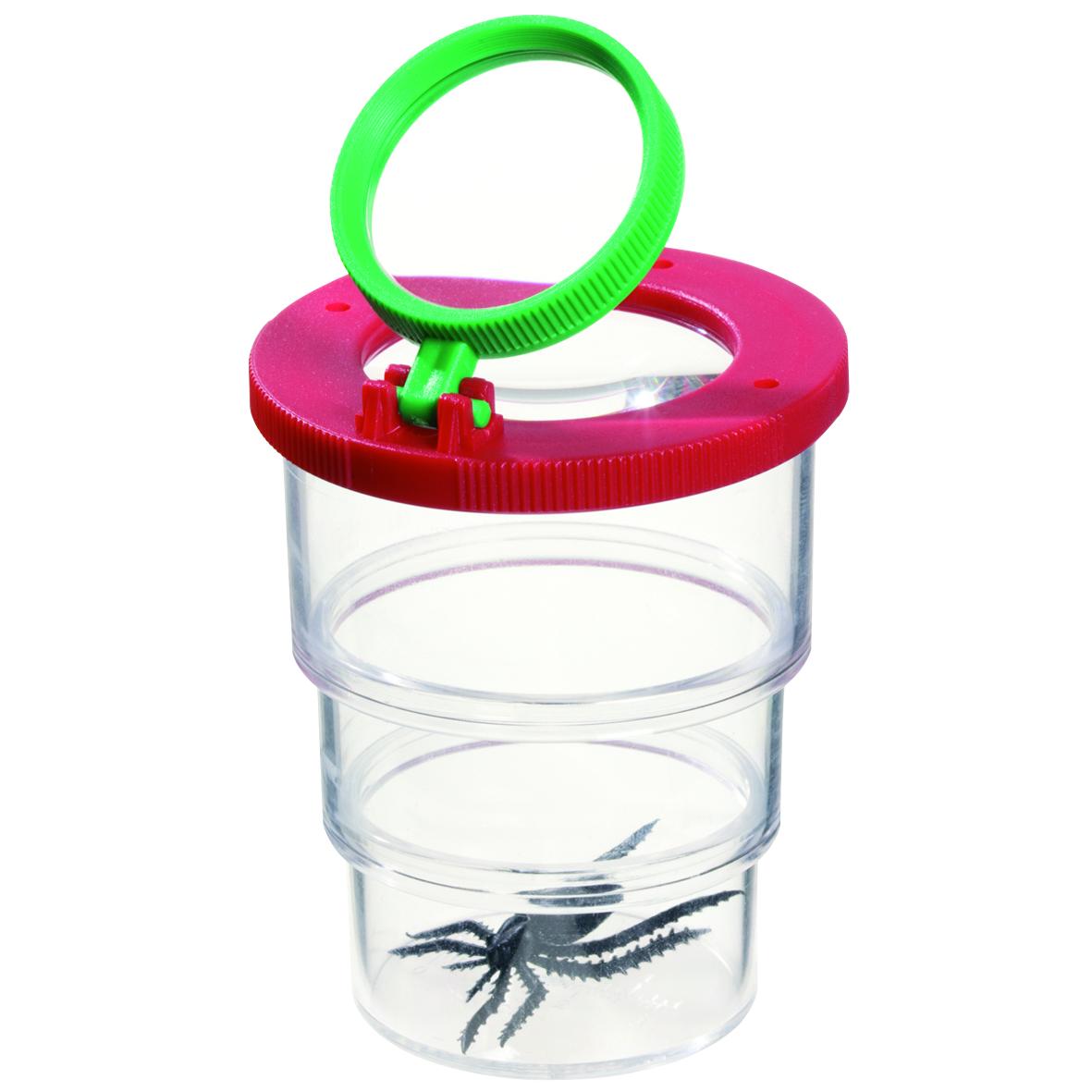Plastična posuda za proučavanje malih stvorenja, cvjetića, novčića… Ima poklopac s rupicama kako bi životinje mogle nesmetano disati te povećalo koje uvećava 2x i 4x. Leća: Ø45 i 30 mm. Može se rastegnuti u visoku čašu ili koristiti sklopljena u posudu.