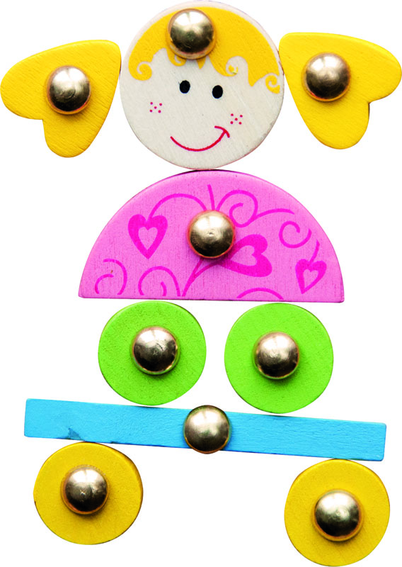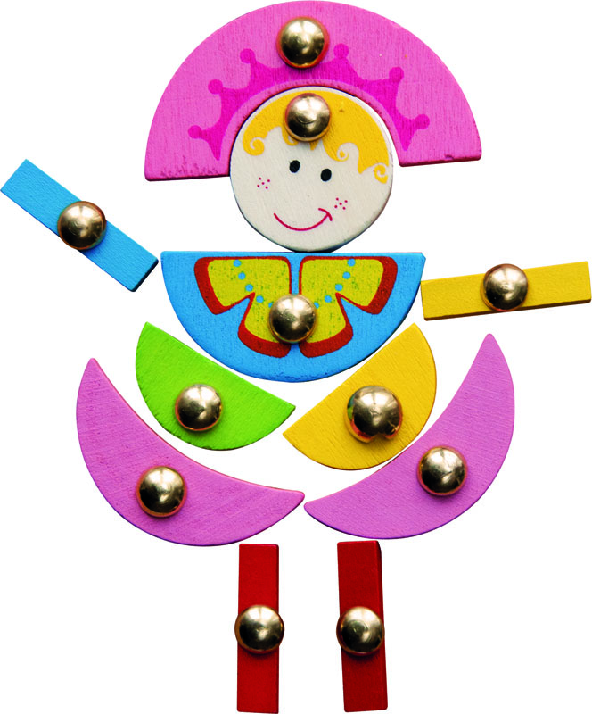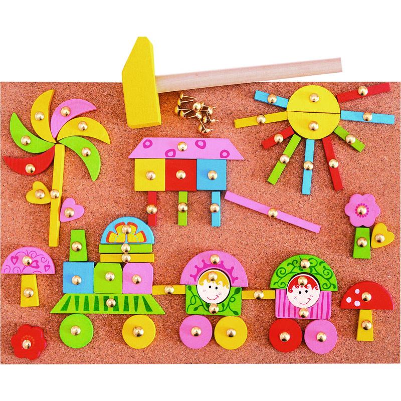 Pravi set za djevojčice pomoću kojeg mogu slagati princeze i šarene kućice. Set se sastoji od drvenih elemenata, čekića, plutene ploče (31×21 cm) i čavlića.