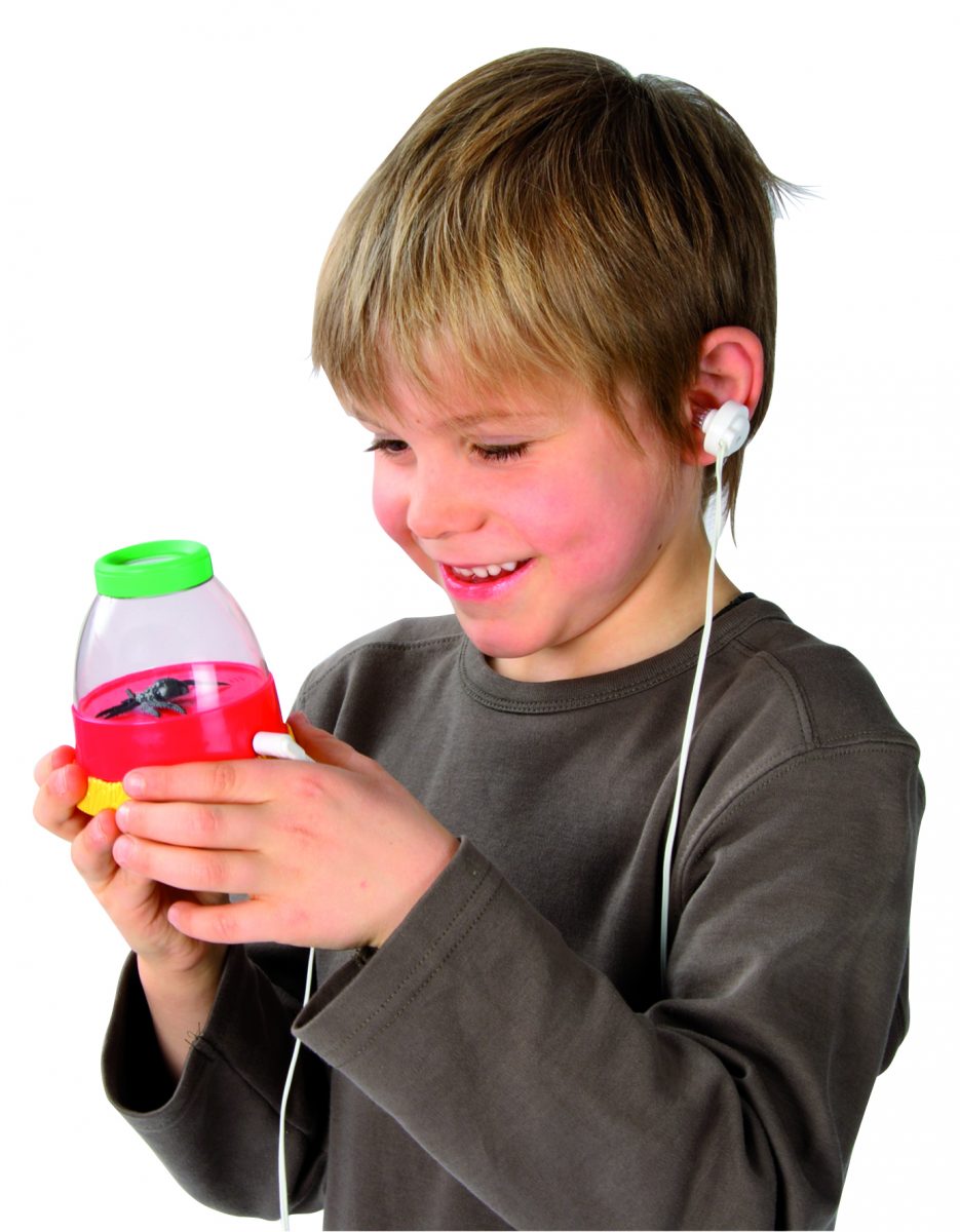 Slušaj što bube imaju reći jedna drugoj! Ovaj mali studio ima slušalice pomoću kojih možete čuti kako se kukci glasaju te bilježiti svoja zapažanja. Razumijete li što kažu? Teško, ali ih je zanimljivo osluškivati. Baterije nisu u sklopu seta.