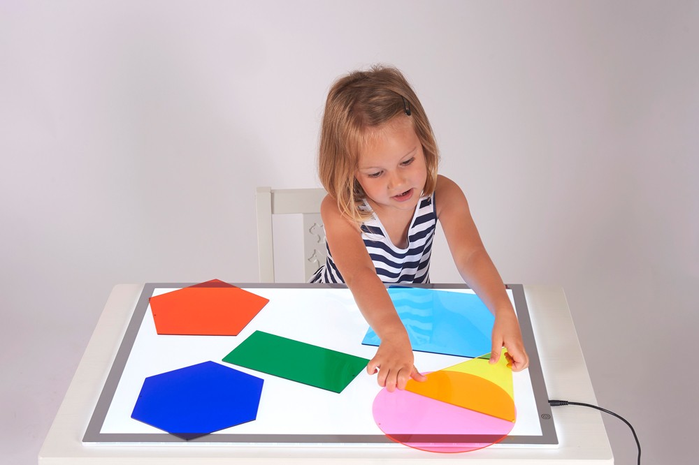 Panel koristi najnoviju niskoenergetsku LED tehnologiju koja osigurava jasnu svjetleću pozadinu. Odličan je za rad sa transparentnim i svjetlećim oblicima te omogućava istraživanje raznih uzoraka, oblika, boja. Elegantnog izgleda i zaobljenih rubova, jednostavno se održava i lako prenosi.