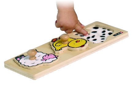 Taktilna umetaljka koja podizanjem životinjskih likova otkriva različite teksture koje imitiraju njihovu kožu / perje / runo. Velike ručice idealne su za male bebe i djecu s motoričkim poteškoćama.
