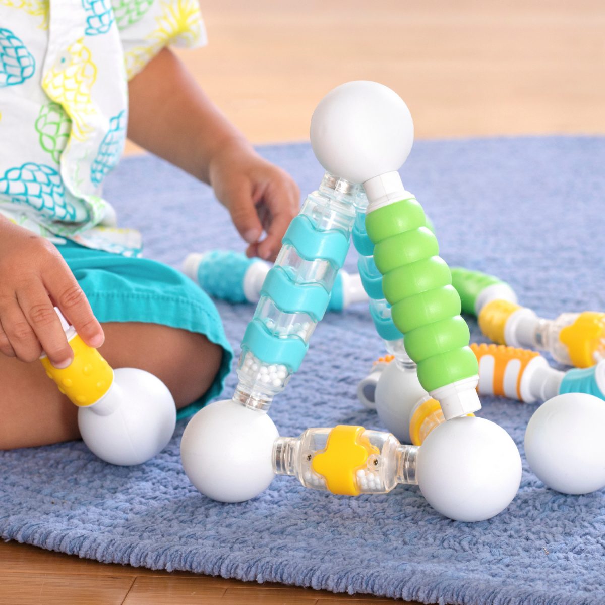 Upoznajte male graditelje s ovim nagrađivanim magnetnim konstruktorom. Djeca će uz njega razvijati svoje slušne i inženjerske vještine te usavršavati grubu i uvježbavati finu motoriku. Magnetni,šareni štapovi su punjeni perlicama te svaki pokret i stvaranje novog oblika pruža jedinstveni zvučni doživljaj. Taktilni i na dodir mekani magnetni elementi su jednostavni za držanje te njima djeca uče vještine građenja, razvijaju maštu te sugeriraju različite imitativne igre.