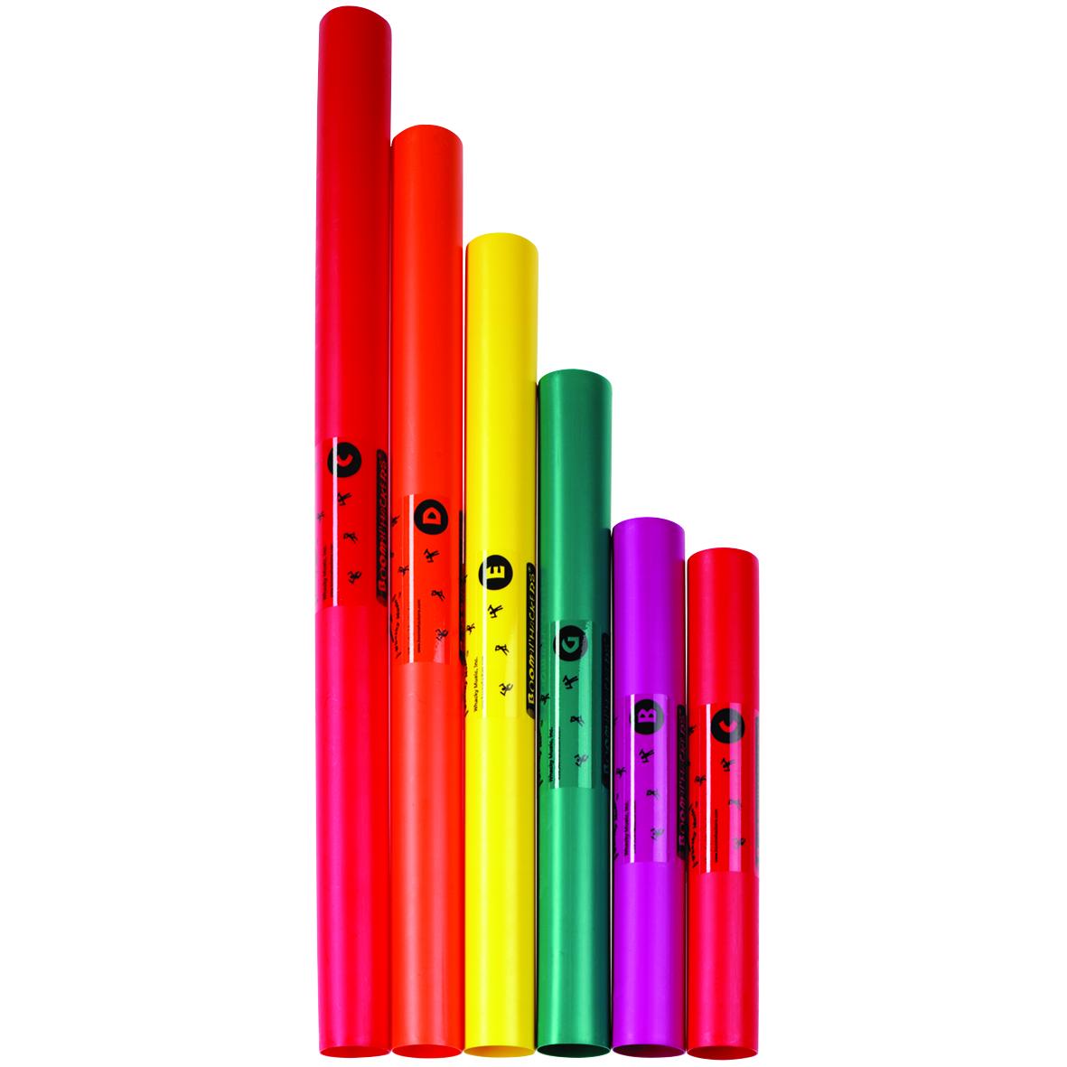 Plastične tube savršeno su tonirane, različitih su nota što je jasno naznačeno na svakoj od njih. Udarite s njom po ruci ili bilo kojem predmetu: različite podloge proizvode različite zvukove, ali uvijek u istom tonu. Pentatonic set 6 nota u 6 tuba: c, d, e, g, b, c.